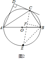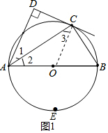 分析 (1)连接OC,如图1中.只要证明OC∥AD,由AD⊥CD,即可证明OC⊥CD解决问题.