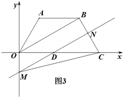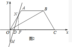 ①当N点在OA上时,如图2,若CN⊥MN时,此时线段OA上N点下方的点(不包括N、O)均满足△MNC为钝角三角形.![]()