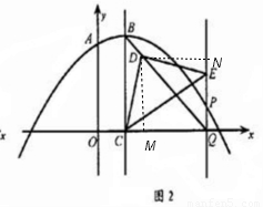 ①若含45°角的直角三角板如图2所示放置.其中,一个顶点与点C重合,直角顶点D在BQ上,另一 个顶点E在PQ上.求直线BQ的函数解析式;