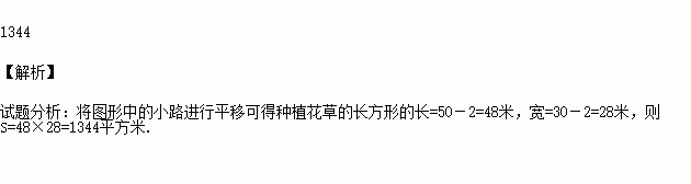 如图所示,在长为50米,宽为30米的长方形地块上,有纵横交错的几条小路(图中阴影部分),宽均为2 米,其他部分均种植花草,则种植花草的面积是____________米2;