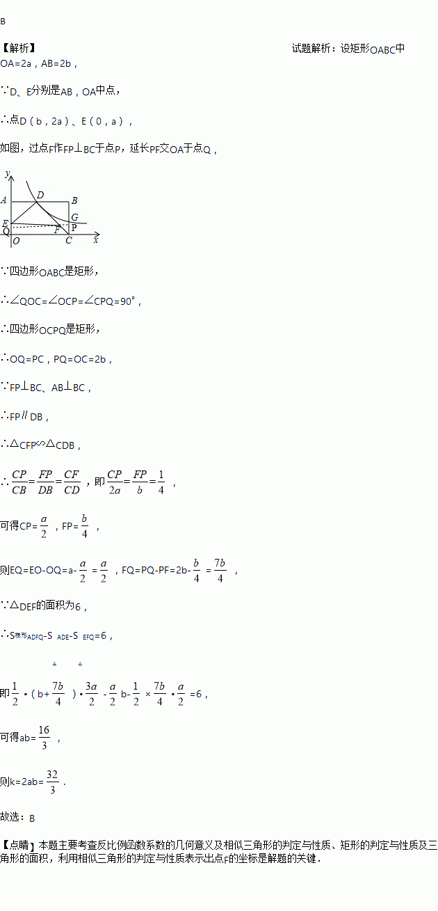与BC交于点G.连接DC,F在DC上,且DF:FC=3:1,连接DE,EF.若△DEF的面积为6,则k的值为( ).