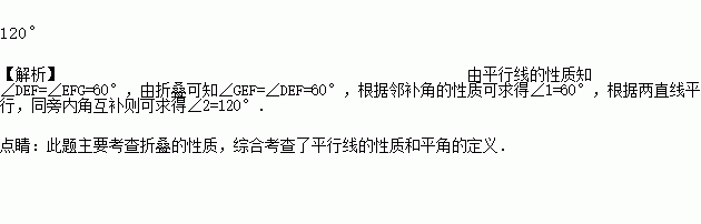 把一张长方形纸片ABCD沿EF折叠后ED与BC的交点为G,D,C分别在D′,C′的位置上,如下图所示,若∠EFG=60°,则∠2=________.