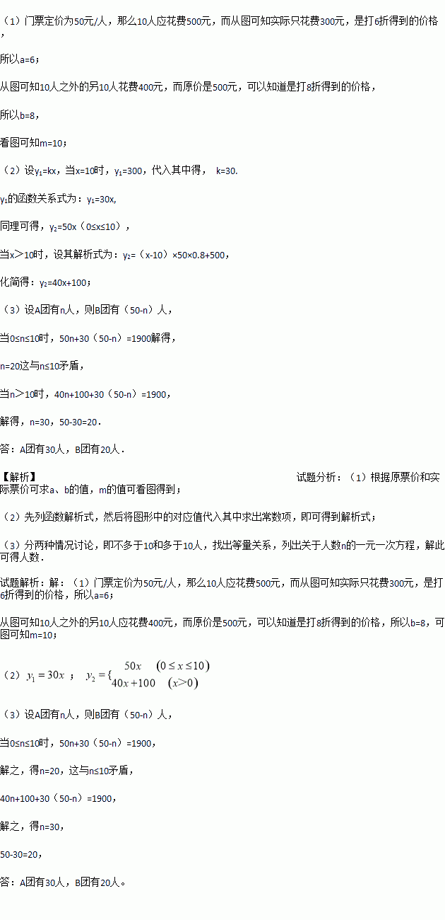 Ϊ·¢Õ¹ÂÃÓξ¼Ã£¬ÎÒÊÐij¾°Çø¶ÔÃÅÆ±²ÉÓÃÁé»îµÄÊÛÆ±·½·¨ÎüÒýÓοÍ.ÃÅÆ±¶¨¼ÛΪ50Ôª/ÈË£¬·Ç½Ú¼ÙÈÕ´òaÕÛÊÛÆ±£¬½Ú¼ÙÈÕ°´ÍŶÓÈËÊý·Ö¶Î¶¨¼ÛÊÛÆ±£¬¼´mÈËÒÔÏ£¨º¬mÈË£©µÄÍŶӰ´Ô¼ÛÊÛÆ±£»³¬¹ýmÈ˵ÄÍŶӣ¬ÆäÖÐmÈËÈÔ°´Ô¼ÛÊÛÆ±£¬³¬¹ýmÈ˲¿·ÖµÄÓοʹòbÕÛÊÛÆ±.ÉèijÂÃÓÎÍÅÈËÊýΪxÈË£¬·Ç½Ú¼ÙÈÕ¹ºÆ±¿îΪ