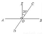 如图,已知AB、CD相交于点O,OE⊥AB于点O,∠EOC=28°,则∠AOD=_____度.
