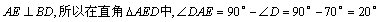 如图,ABCD中,DB=CD,∠C=70,AE⊥BD于E,试求的度数。