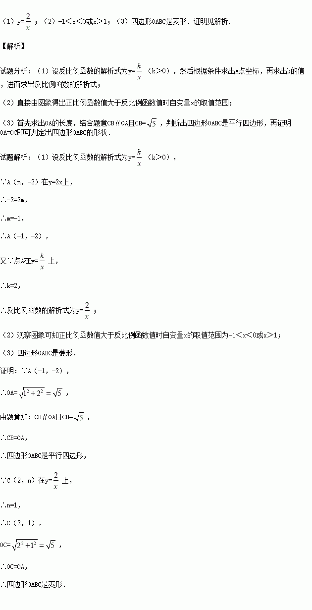 如图,已知正比例函数y=2x和反比例函数的图象交于点A(m,-2).