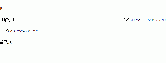 如图,D,E 分别是△ABC 的边BA,BC 延长线上的点,连接DC. 若∠B=25°,∠ACB=50°,则下列角中度数为75°的是( )