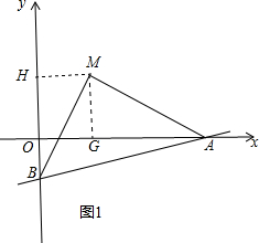 分析:分两种情况分别讨论求得;①当M在直线AB的上方时,作MG⊥x轴于G,MH⊥y轴于H,通过△MBH≌△MGA求得MH=MG,BH=GA,设MH=MG=x,则GA=5-x,BH=x+1,即可列出