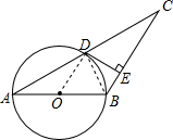 ∴∠ODB+∠EDB=90°,即∠ODE=90°,