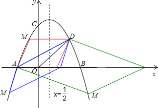 (2)分两种情况讨论:①以AD为对角线的平行四边形AMDN,此时MD∥x轴,则M、D的纵坐标相同,由此可求得M点的坐标;②以AD为边的平行四边形ADNM,由于平行四边形是中心对称图形,可求得△ADM≌△ADN,即M、N纵坐标的绝对值相等,可据此求出M点的坐标;