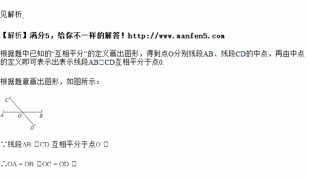 如果两条线段相交于一点,且这个交点既是第一条线段的中点,又是第二条线段的中点,那么我们就说这两条线段“互相平分”.你能画出“线段,![]()