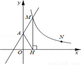 (x>0)的图象交于点M,过M作MH⊥x轴于点H,且tan∠AHO=2.