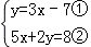 把①代入②得,5x+2(3x﹣7)=8,解得 x=2, 把 x=2 代入①得,y=6﹣7=﹣1,