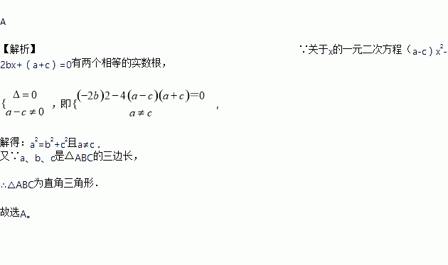 如果关于x的一元二次方程(a-c)x2-2bx+(a+c)=0有两个相等的实数根,其中a、b、c是△ABC的三边长,那么△ABC的形状是( )