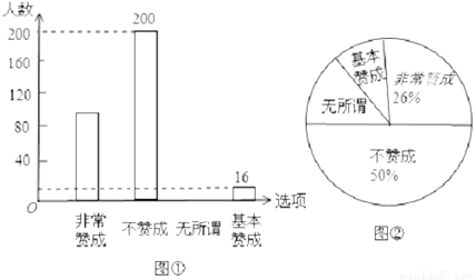 (1)求这次调查的家长总数及家长表示“无所谓”的人数,并补全图①;