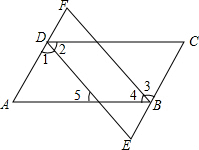 解答 证明:∵四边形ABCD是平行四边形,∴AB∥CD,∠ADC=∠ABC,AD∥BC,∴∠2=∠5,∵DE平分∠ADC,BF平分∠ABC,∴∠2=$\frac{1}{2}$∠ADC,∠4=$\frac{1}{2}$∠ABC,∴∠2=∠4,∴∠4=∠5,∴DE∥BF,∴四边形BEDF是平行四边形,∴∠E=∠F.