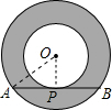 分析 连结OP、OA,如图,根据切线的性质得OP⊥AB,则利用垂径定理得到AP=BP=$\frac{1}{2}$AB=2$\sqrt{3}$,在Rt△OAP中利用勾股定理得到OA2-OP2=AP2=12,则(OA-OP)(OA+OP)=12,然后利用OA、OP为整数和整数的整除性解得$\left\{\begin{array}{l}{OA=4}\\{OP=2}\end{array}\right.$,于是可判断满足条件的不全等的“圆环带”有1个.