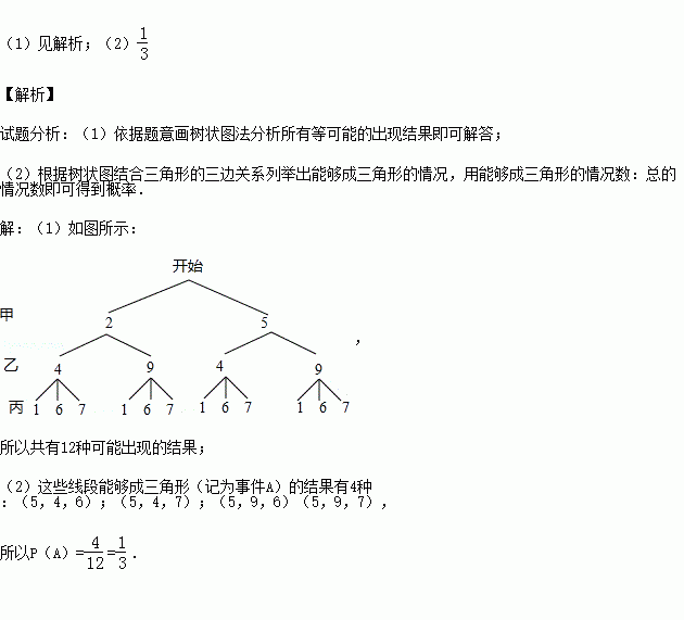 (2013•贺州)甲口袋中装有两个相同的小球,它们的标号分别为2和5,乙口袋中装有两个相同的小球,它们的标号分别为4和9,丙口袋中装有三个相同的小球,它们的标号分别为1,6,7.从这3个口袋中各随机取出一个小球.