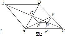 (2)如图2中,延长PM交BC于E.先证明PD=BE,再利用三角形中位线定理证明MN=$\frac{1}{2}$BE,ON=$\frac{1}{2}$PD即可.
