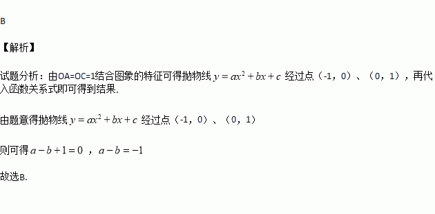 的图像,A、B、C 为抛物线与坐标轴的交点,且OA=OC=1,则下列关系中正确的是( )