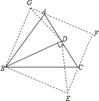 解:如图,把△BCD沿BC为对称轴翻折成为△BCE,△BDA沿AB为对称轴翻折成为△ABG,延长EC、GA相交于点F,
