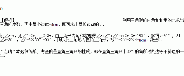 A. 3cm,4cm,8cm B. 8cm,7cm,15cm