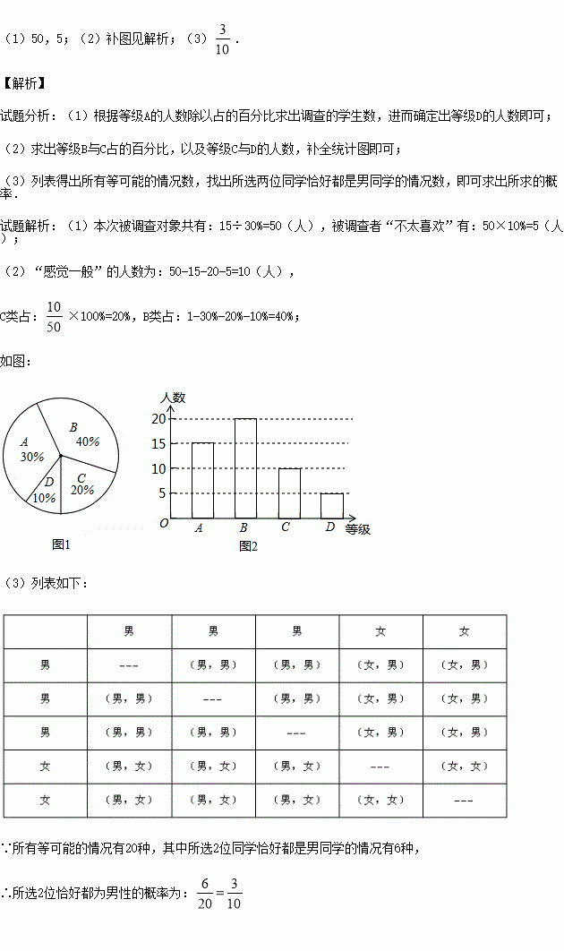 £¨3£©ÔÚ¡°·Ç³£Ï²»¶¡±µ÷²é½á¹ûÀïÓÐ5ÈËΪ80ºó£¬ÆäÖÐ3ÄÐ2Å®£¬ÔÚÕâ5ÈËÖУ¬¸Ã×éÖ¯´òËãËæ»úÑ¡2λ½øÐвɷã¬ÇëÄãÓÃÁÐ±í·¨»òÊ÷״ͼ·¨Çó³öËùÑ¡2λǡºÃ¶¼ÎªÄÐÐԵĸÅÂÊ.