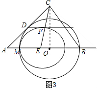 ②如图3,当⊙E与⊙O相切于点M时,连接CO,![]()