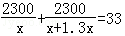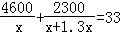 某电子元件厂准备生产4600个电子元件,甲车间独立生产了一半后,由于要尽快投入市场,乙车间也加入该电子元件的生产,若乙车间每天生产的电子元件是甲车间的1.3倍,结果用33天完成任务,问甲车间每天生产电子元件多少个?在这个问题中设甲车间每天生产电子元件x个,根据题意可得方程为( )