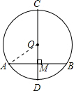 精英家教网如图,在⊙O中,直径CD的长度为10cm,AB是弦,且AB⊥CD于M,OM=3cm,求弦AB的长.