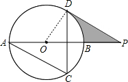 (2)求出OP、DP长,分别求出扇形DOB和三角形ODP面积,即可求出答案.