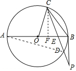 (2)利用已知得出EC,DE的长,再利用勾股定理得出CF的长,t即可得出an∠OBC的值,再利用全等三角形的判定与性质得出DP的长.