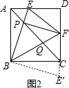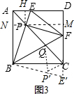 在BE′截取BP′=BP,连结CP′,QP′,如图3,![]()