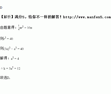 (k>0)与⊙O的一个交点,图中阴影部分的面积为10π,则反比例函数的解析式为( )