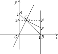 解:(1)过点C作MN∥OB,分别交y轴于点M,直线x=1于点N,