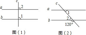 图2根据先求出120°的邻补角,再根据两直线平行,内错角相等可得∠1=∠2.