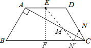 分析:首先得出梯形底角的度数,进而确定M的位置,将EM、MN转化到一条直线上,就可求出其和最小值.