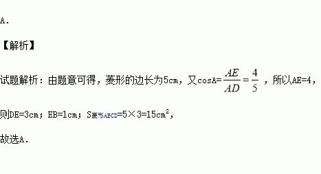 如图,菱形ABCD的周长为20cm,DE⊥AB,垂足为E,cosA=