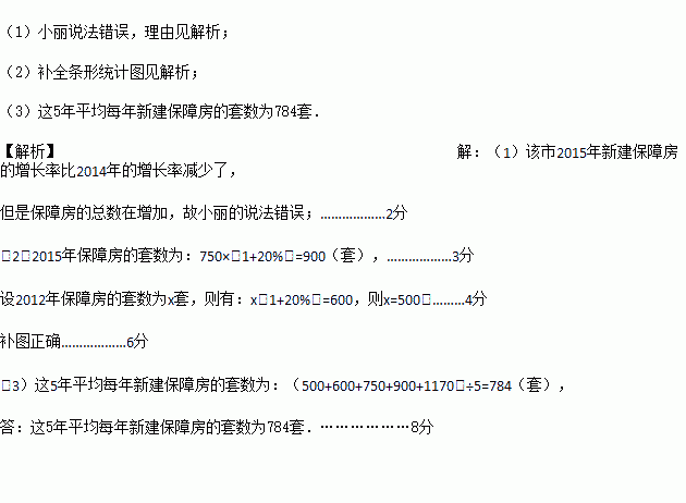 (1)小丽看了统计图后说:“该市2015年新建保障房的套数比2014年少了.”你认为小丽说法正确吗?请说明理由;