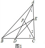 分析 (1)①如图1,由AF=CF得到∠1=∠2,则利用等角的余角相等可得∠3=∠ADC,然后根据等腰三角形的判定定理得FD=FC,易得AF=FD;