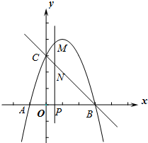 如图,抛物线y=-x2+bx+c与x轴交于A、B两点(点A在点B的左侧),点A的坐标为(-1,0),与y轴交于点C(0,3),作直线BC.动点P在x轴上运动,过点P作PM⊥x轴,交抛物线于点M,交直线BC于点N,设点P的横坐标为m.