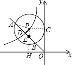分析 作PH⊥x轴于H,交直线y=-x于E,作PD⊥AB于D,连结PC、PA,如图,根据切线的性质得PC⊥y轴,则PC=PA=OH=3,再根据垂径定理,由PD⊥AB得AD=BD=$\frac{1}{2}$AB=2$\sqrt{2}$,则可根据勾股定理计算出PD=1,接着利用直线y=-x为第二、四象限的角平分线可判断△HOB和△PDE都为等腰直角三角形,所以EH=OH=3,PE=$\sqrt{2}$PD=$\sqrt{2}$,则P(-3,$\sqrt{2}$+3),然后利用待定系数法求过点P的双曲线的解析式.