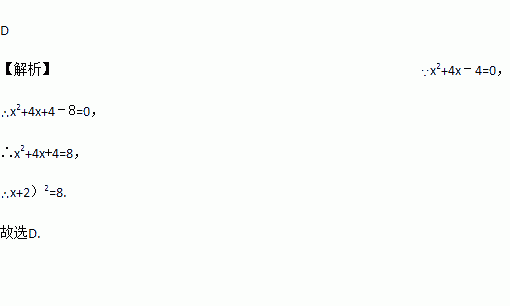 A. (x+2)2=﹣8 B. (x﹣2)2=﹣8 C. (x﹣2)2=8 D. (x+2)2=8