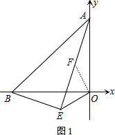 (2)如图1,过点O作OF⊥OE交AE于F,利用已知条件证明△OBE≌△OAF(ASA),得到OE=OF,即△OEF为等腰直角三角形,即可解答;