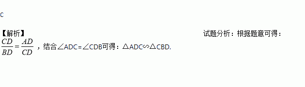 A. △ADC∽△ACB B. △BDC∽△BCA C. △ADC∽△CBD D. 无法判断