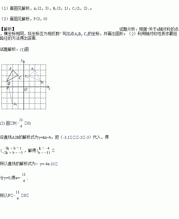 (2)在x轴上是否存在一点P使得△ABP的周长最小,若存在请在图中画出△ABP,并写出点P的坐标。