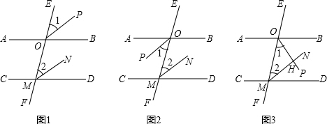 (2)如图2,AB∥CD,EF与AB、CD分别相交于点O、M,OP、MN分别是∠AOM、∠DMO的平分线.