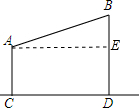 解答 解:作AE⊥BD于E,由题意得,四边形ACDE为矩形,BE=BD-DE=BD-AC=500米,又AE=CD=1200米,由勾股定理得,AB=$\sqrt{A{E}^{2}+B{E}^{2}}$=1300米,答:这一绳索至少需要1300米.