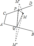 分析:分别作出M关于AB、CD的对称点M″、M′,连接M′M″交AB、CD于Q,P,连接PM、PQ、MQ,即为所求.