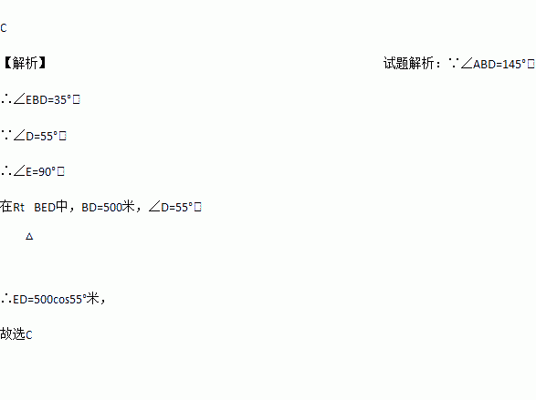 A. 500sin55°米 B. 500cos35°米 C. 500cos55°米 D. 500tan55°米